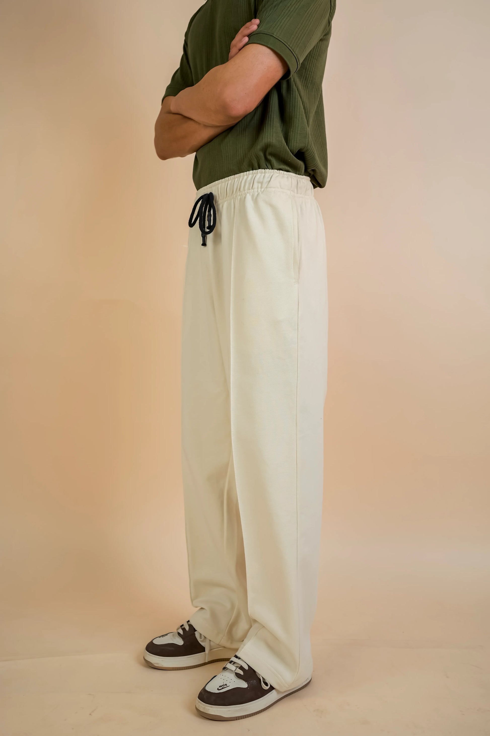 BEIGE PLEATED STRAIGHT TROUSER