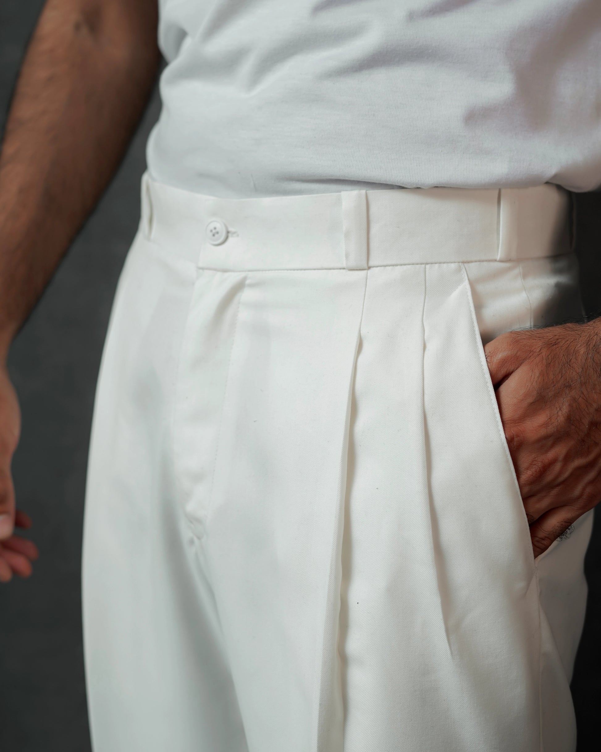 WHITE PLEATED STRAIGHT PANT